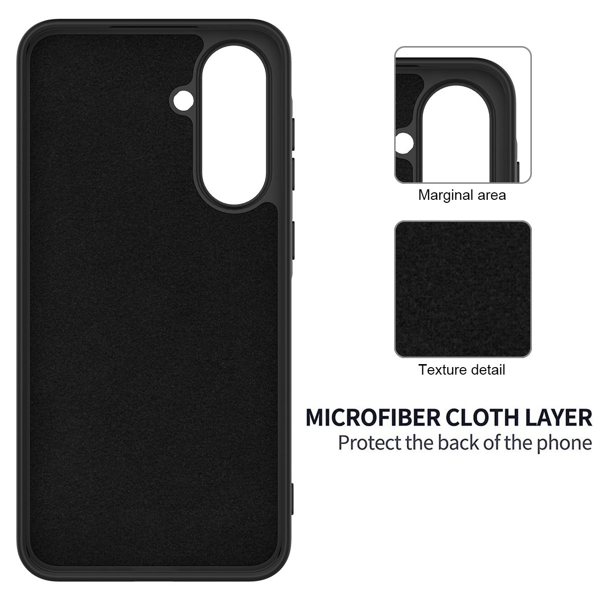Highlights ✔ Hochwertiges Liquid-Silikon Die matte Oberfläche ist angenehm weich, griffig und gleichzeitig widerstandsfähig gegen Staub, Fingerabdrücke und Kratzer. ✔ Rundum-Schutz (Full Coverage) Die Hülle schützt das gesamte Gerät – inklusive verstärkter Ränder für Display und Kamera – ideal für den täglichen Einsatz. ✔ Stoßfest & dropproof Die langlebige Silikon-Schutzschicht und das robuste Innenfutter absorbieren Stöße effektiv und reduzieren das Risiko von Schäden bei Stürzen. ✔ Weiche Mikrofaser-Innenseite Ein sanftes Mikrofaserlining schützt die Rückseite Ihres Smartphones vor Mikrokratzern und hält es sauber. ✔ Perfekte Passform Alle Aussparungen und Tastenabdeckungen sind präzise gefertigt und gewährleisten eine zuverlässige Bedienbarkeit ohne Einschränkungen. ✔ Anti-Rutsch Oberfläche Die samtige Soft-Touch-Haptik verhindert ein Abrutschen aus der Hand und bietet sicheren Halt. Technische Details Material: Liquid Silicone + Mikrofaser-Innenfutter Farbe: Schwarz Kompatibilität: Samsung Galaxy A57 5G Eigenschaften: Stoßfest, dropproof, kratzfest, rutschfest, vollflächige Abdeckung