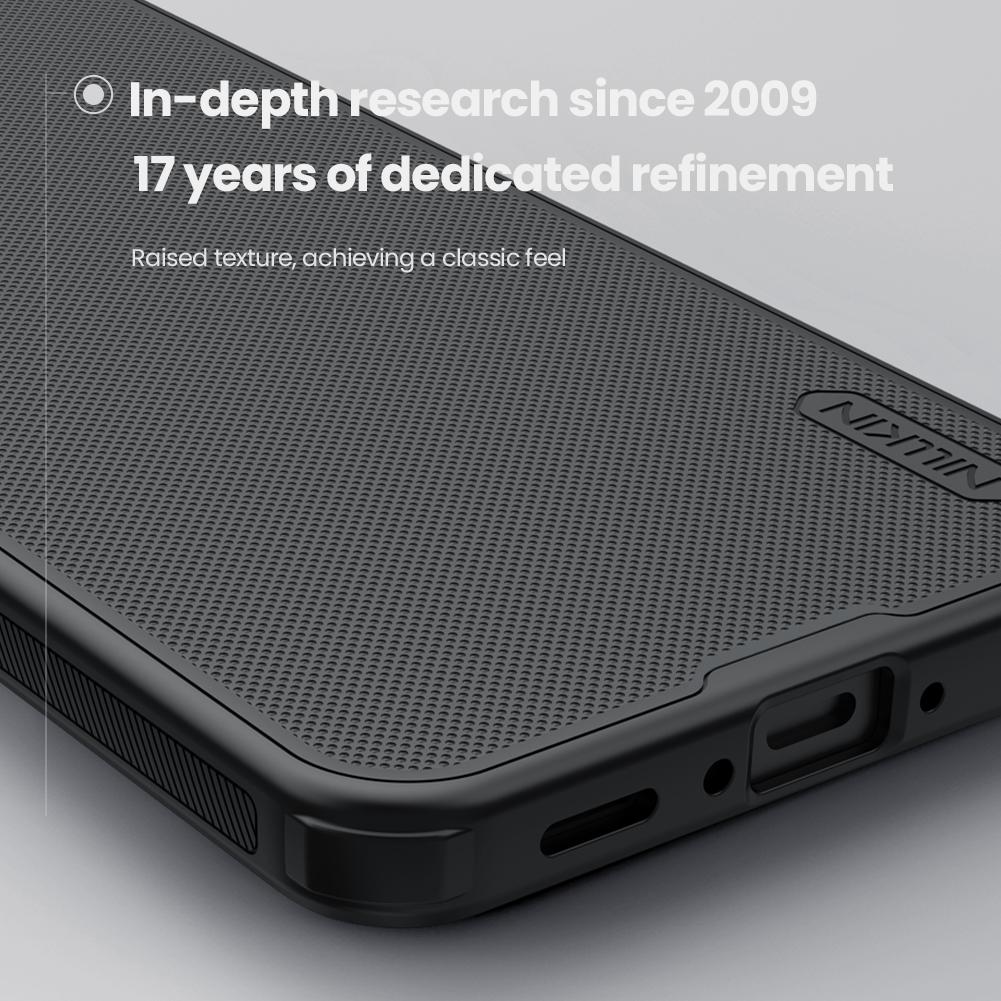 ighlights ✔ Premium-Hybridkonstruktion (PC + TPU) Die harte PC-Rückseite sorgt für hohe Widerstandsfähigkeit gegen Kratzer und Abnutzung, während der flexible TPU-Rahmen Stöße effektiv absorbiert und sicheren Grip bietet. ✔ Matte, rutschfeste Oberfläche Die fein strukturierte Anti-Fingerprint-Beschichtung verhindert Fingerabdrücke, Staubablagerungen und bietet eine besonders griffige Haptik. ✔ Erhöhte Kanten für Kamera & Display Sensible Bereiche wie Kamera und Front werden durch leicht erhöhte Umrandungen zuverlässig geschützt – ideal für den täglichen Einsatz. ✔ Präzise Passform von NILLKIN Perfekt abgestimmte Aussparungen für Anschlüsse, Mikrofone, Kamera und Lautsprecher sowie reaktionsschnelle Tastenabdeckungen garantieren volle Bedienbarkeit. ✔ Schlankes, stylisches Design Trotz verstärktem Schutz bleibt das Profil schlank und elegant – für Nutzer, die Qualität und ein hochwertiges Erscheinungsbild schätzen. Technische Details Marke: NILLKIN Serie: Super Frosted Shield Pro Material: Polycarbonat (PC) + Thermoplastisches Polyurethan (TPU) Farbe: Schwarz Kompatibilität: Samsung Galaxy A57 5G Eigenschaften: Stoßfest, kratzfest, Anti-Fingerprint, rutschfest